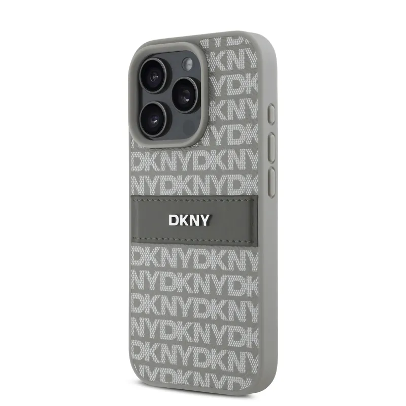 DKNY PU Leather Repeat Pattern Tonal Stripe Zadní Kryt pro iPhone 16 Pro Beige