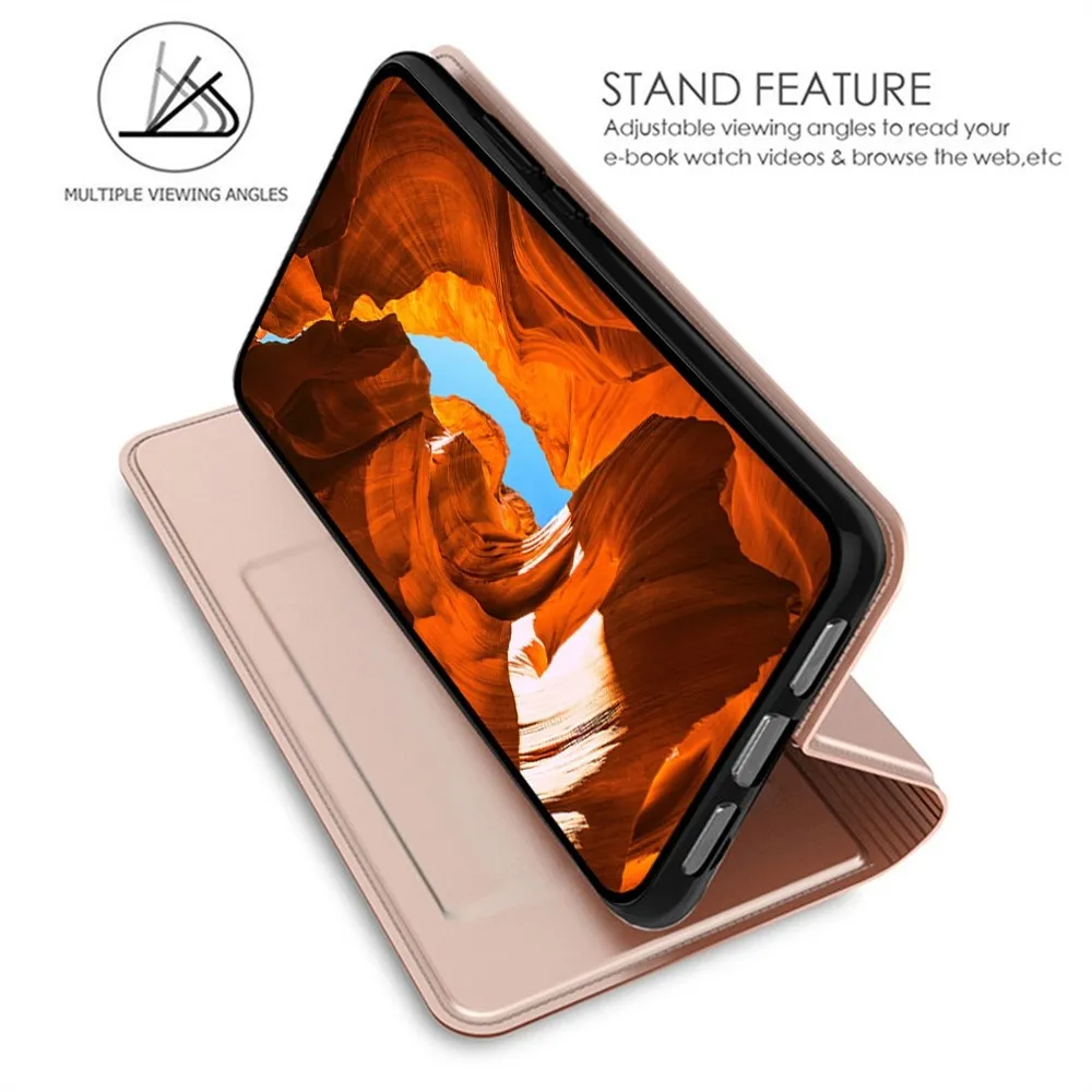 Knížkové pouzdro DUX z vysoce kvalitní syntetické PU kůže se zesíleným šitím poskytne přístroji vysokou ochranu.