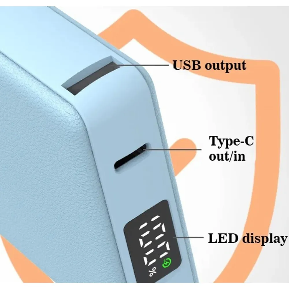 Kapacita baterie: 10000 mAh Typ baterie: 785767 ×2 Materiál: mikrovláknová kůže + ABS Rozměry: 86 × 69 × 21 mm