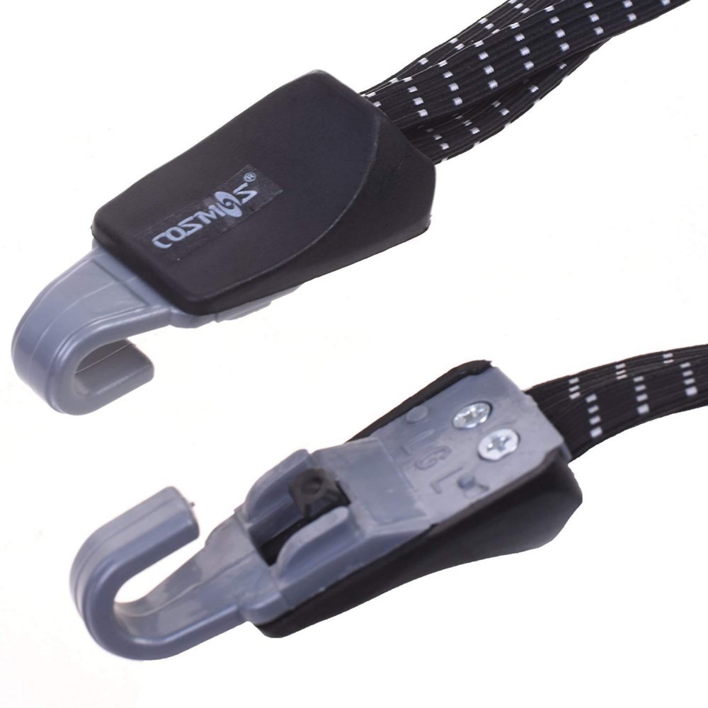 Praktické elastické upínací lano na nosič kola slouží k bezpečnému zajištění zavazadel během jízdy. Pružná šňůra umožňuje snadné napnutí a pevné uchycení nákladu bez složité manipulace. Odolné kovové háčky zajišťují stabilní fixaci k nosiči a minimalizují riziko uvolnění. Univerzální délka 68 cm je vhodná pro většinu běžných nosičů kol.
