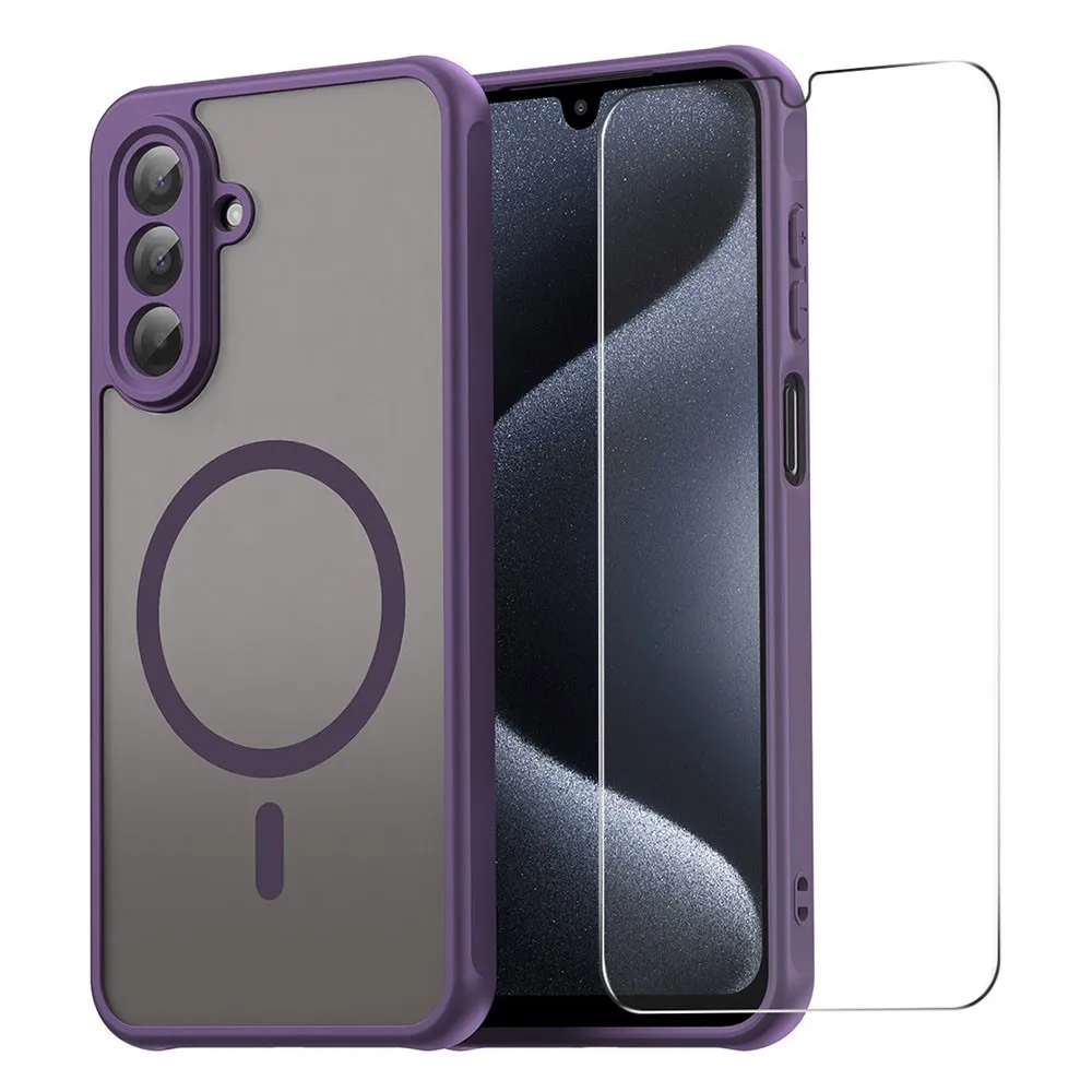 ENKAY matný gelový obal s MagSafe + 9H ochranné sklo na Samsung Galaxy A17 4G/5G - fialový