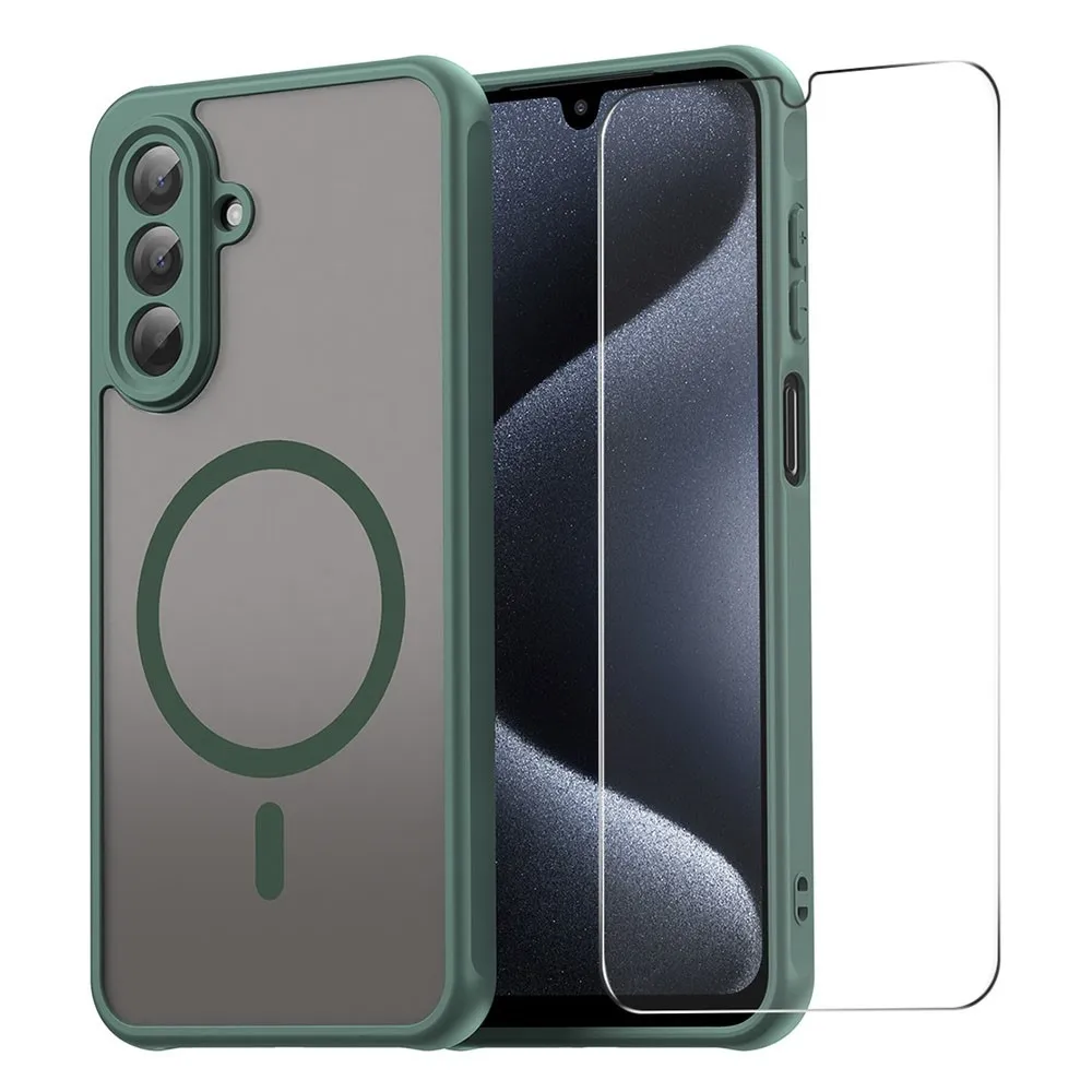 ENKAY matný gelový obal s MagSafe + 9H ochranné sklo na Samsung Galaxy A17 4G/5G - zelený