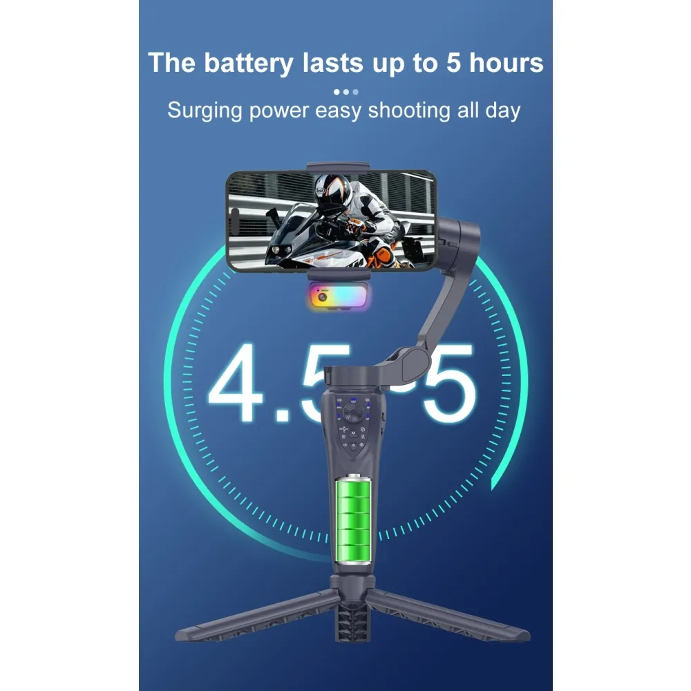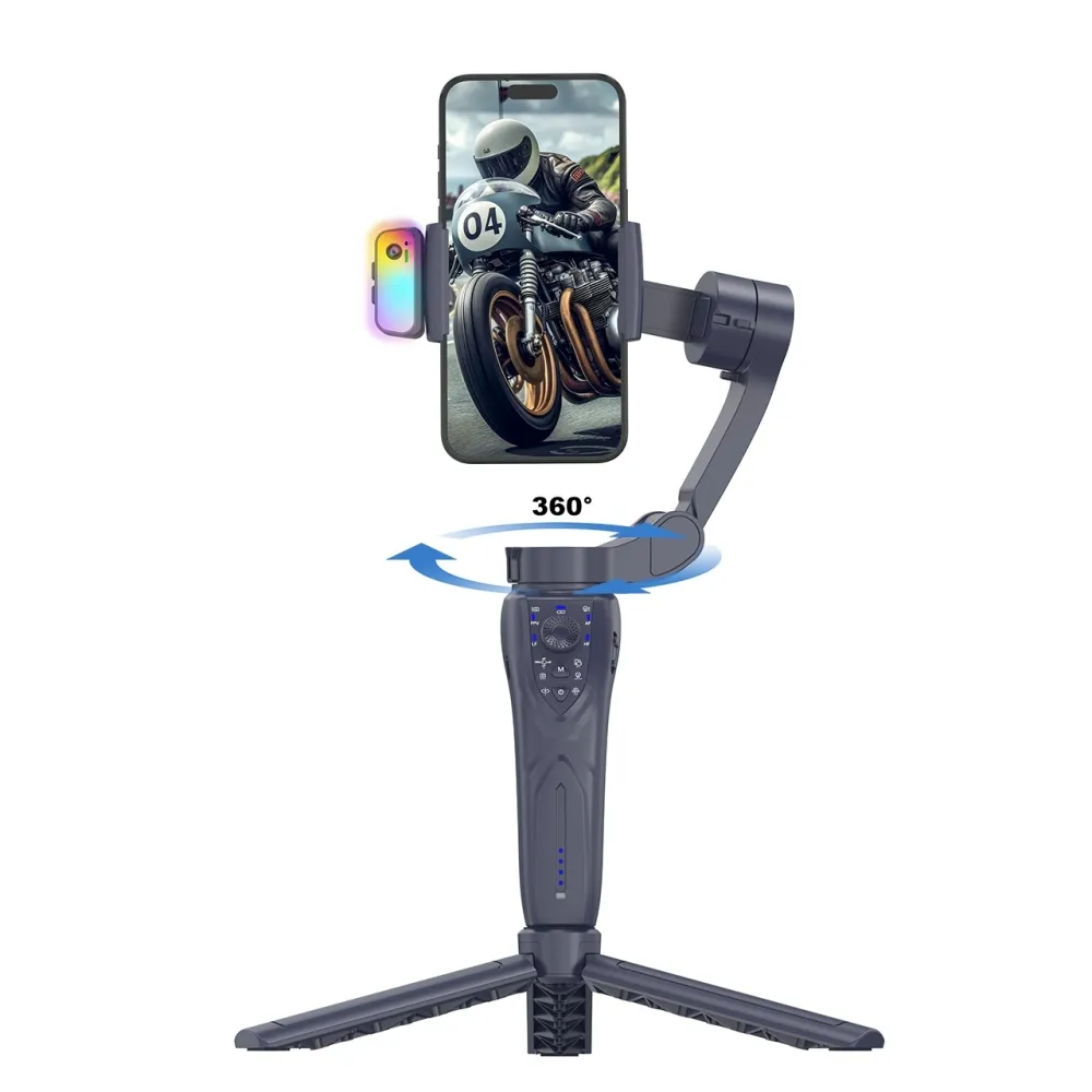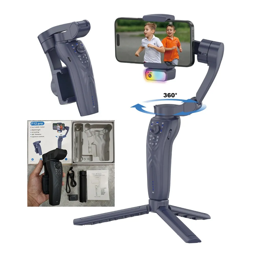 F12 Pro 3osý gimbal stabilizátor na mobil s AI sledováním obličeje a RGB světlem je moderní zařízení pro plynulé natáčení videa bez otřesů. Díky 3osé stabilizaci a 360° rotaci umožňuje profesionálně vypadající záběry při chůzi, natáčení vlogů, livestreamu nebo tvorbě obsahu na sociální sítě.