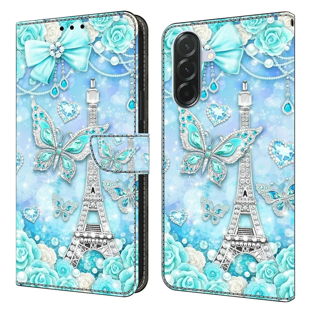 ✅【Kvalitní materiál】 Pouzdro Fashion a motiv Eiffelova věž a motýli na mobil Samsung Galaxy A36 5G je vyrobeno z umělé kůže v kombinaci s TPU s výrazným vzorem