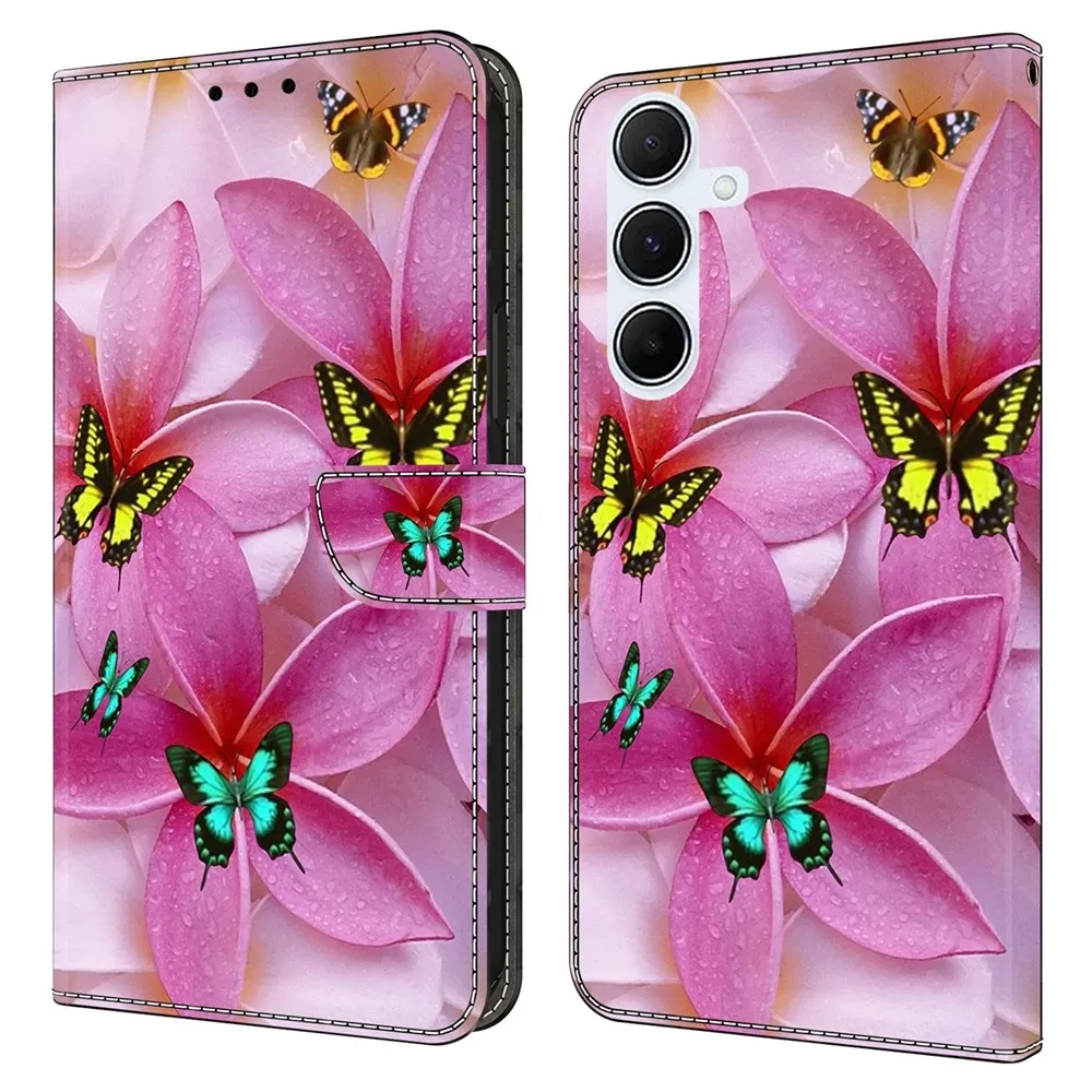 ✅【Kvalitní materiál】 Pouzdro Fashion a motiv motýli a růžové květy na mobil Samsung Galaxy A56 5G je vyrobeno z umělé kůže v kombinaci s TPU s výrazným vzorem
