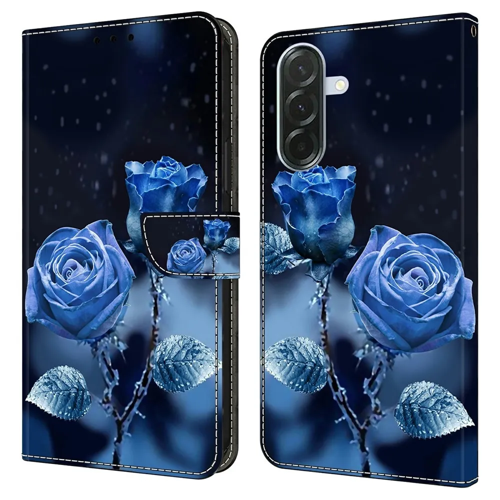 ✅【Kvalitní materiál】 Pouzdro Fashion a motiv modré růže na mobil Samsung Galaxy A57 5G je vyrobeno z umělé kůže v kombinaci s TPU s výrazným vzorem