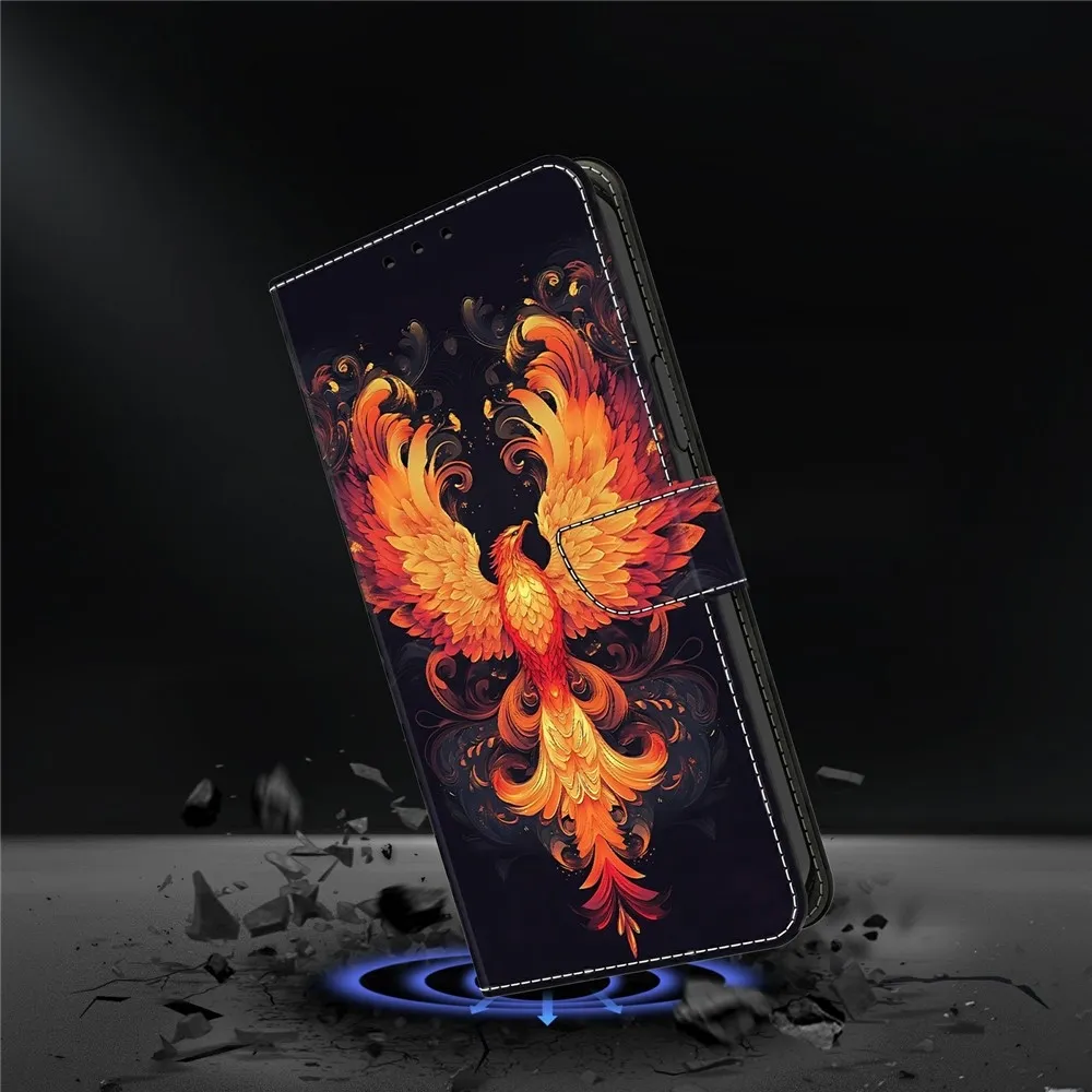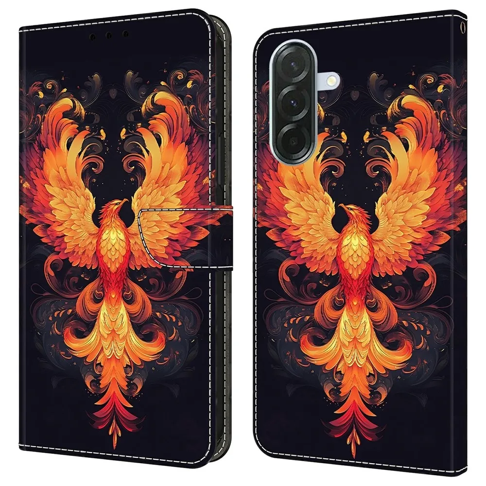 ✅【Prémiové materiály】Toto pouzdro Firmly na mobil Samsung Galaxy A37 5G a motiv ohnivý pták je vyrobeno z vysoce kvalitní umělé kůže a TPU, které nabízejí měkký, hladký a odolný pocit pro dlouhotrvající ochranu.