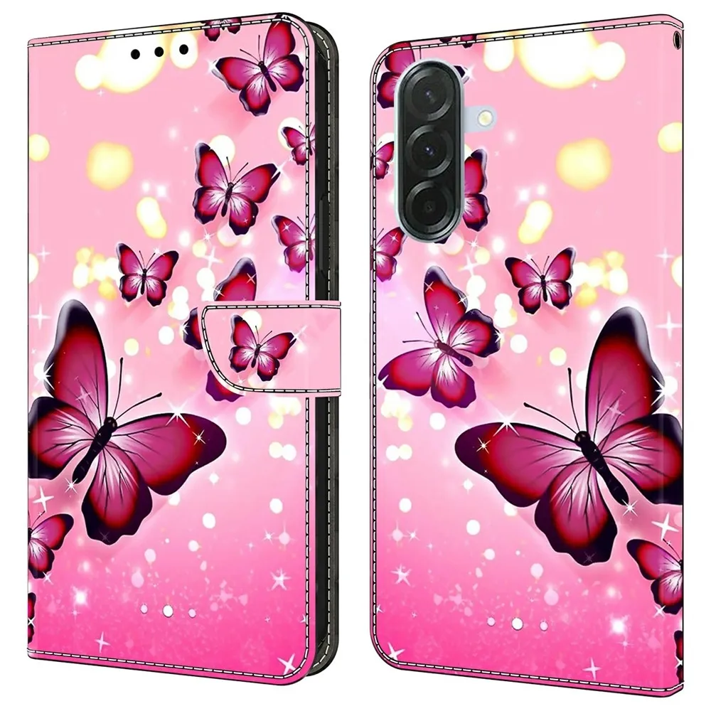✅【Prémiové materiály】Toto pouzdro Firmly na mobil Samsung Galaxy A37 5G a motiv růžoví motýli je vyrobeno z vysoce kvalitní umělé kůže a TPU, které nabízejí měkký, hladký a odolný pocit pro dlouhotrvající ochranu.