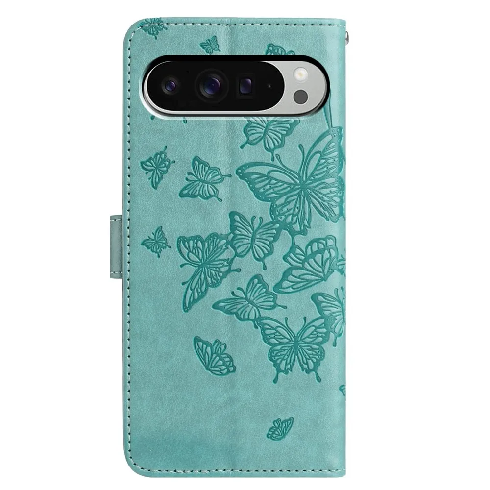 Floral Butterfly knížkové pouzdro na Google Pixel 10 Pro XL/Pixel 9 Pro XL - modrozelené