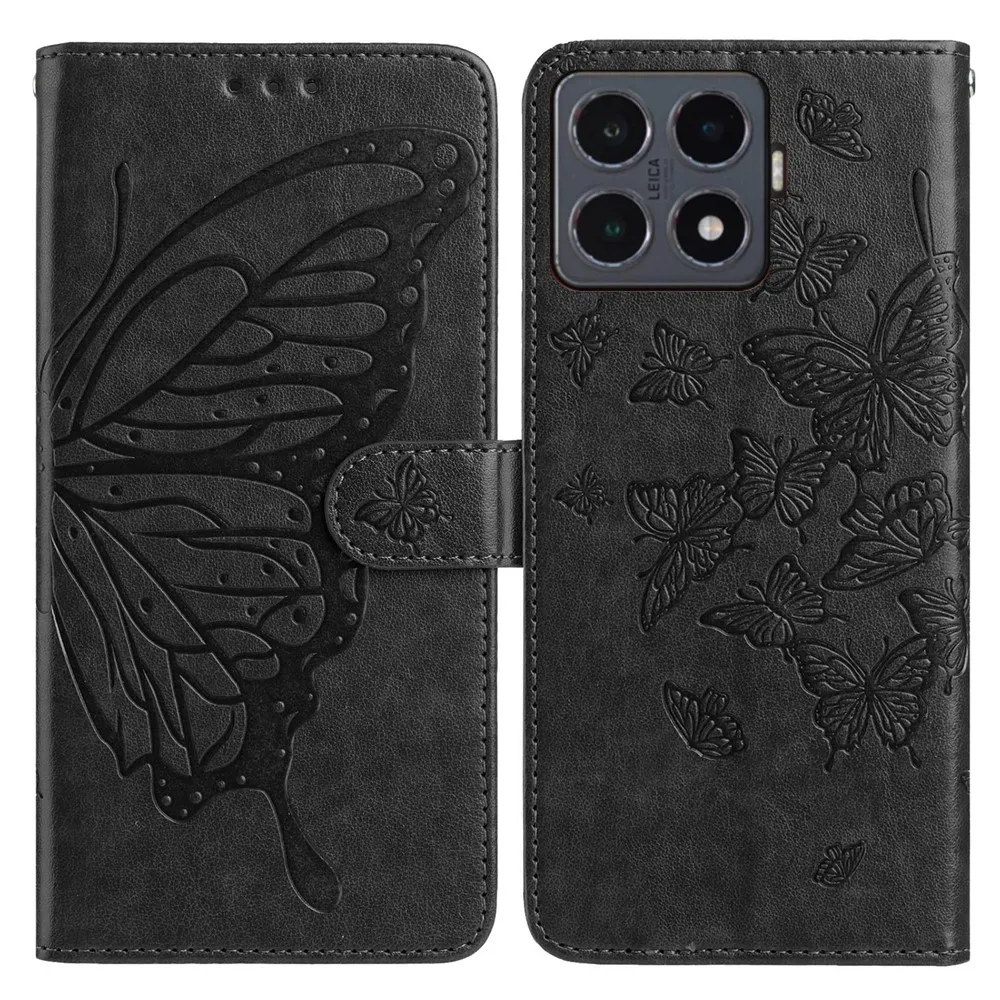 Černé peněženkové pouzdro Floral Butterfly na mobil Xiaomi 15T Pro