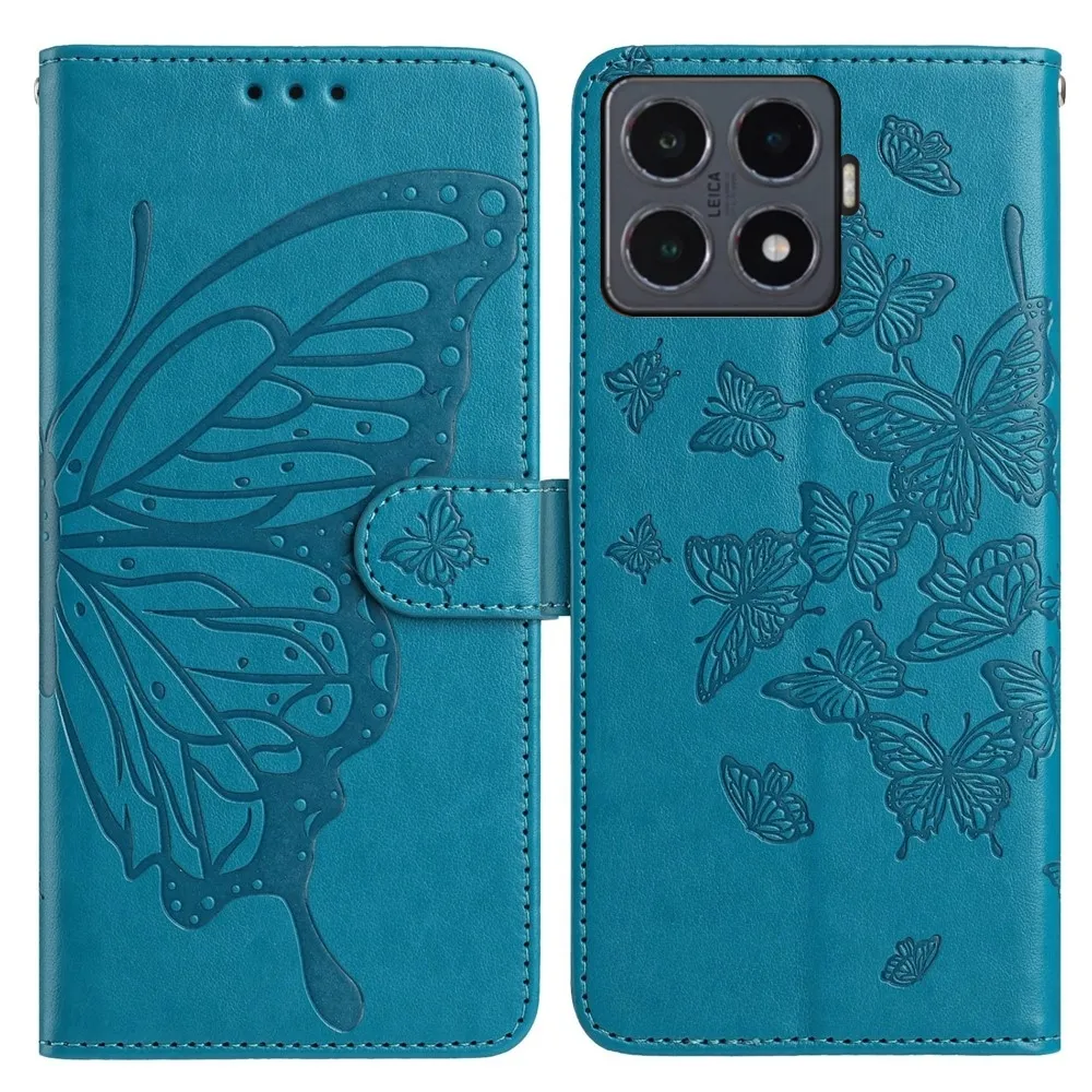 Modré peněženkové pouzdro Floral Butterfly na mobil Xiaomi 15T Pro