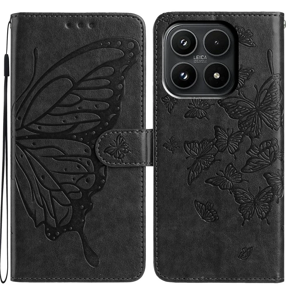 Černé peněženkové pouzdro Floral Butterfly na mobil Xiaomi 17