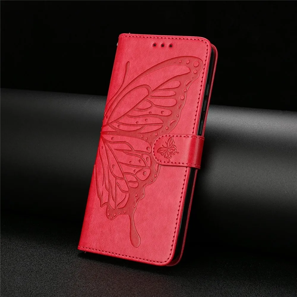 Červené peněženkové pouzdro Floral Butterfly na mobil Xiaomi 17