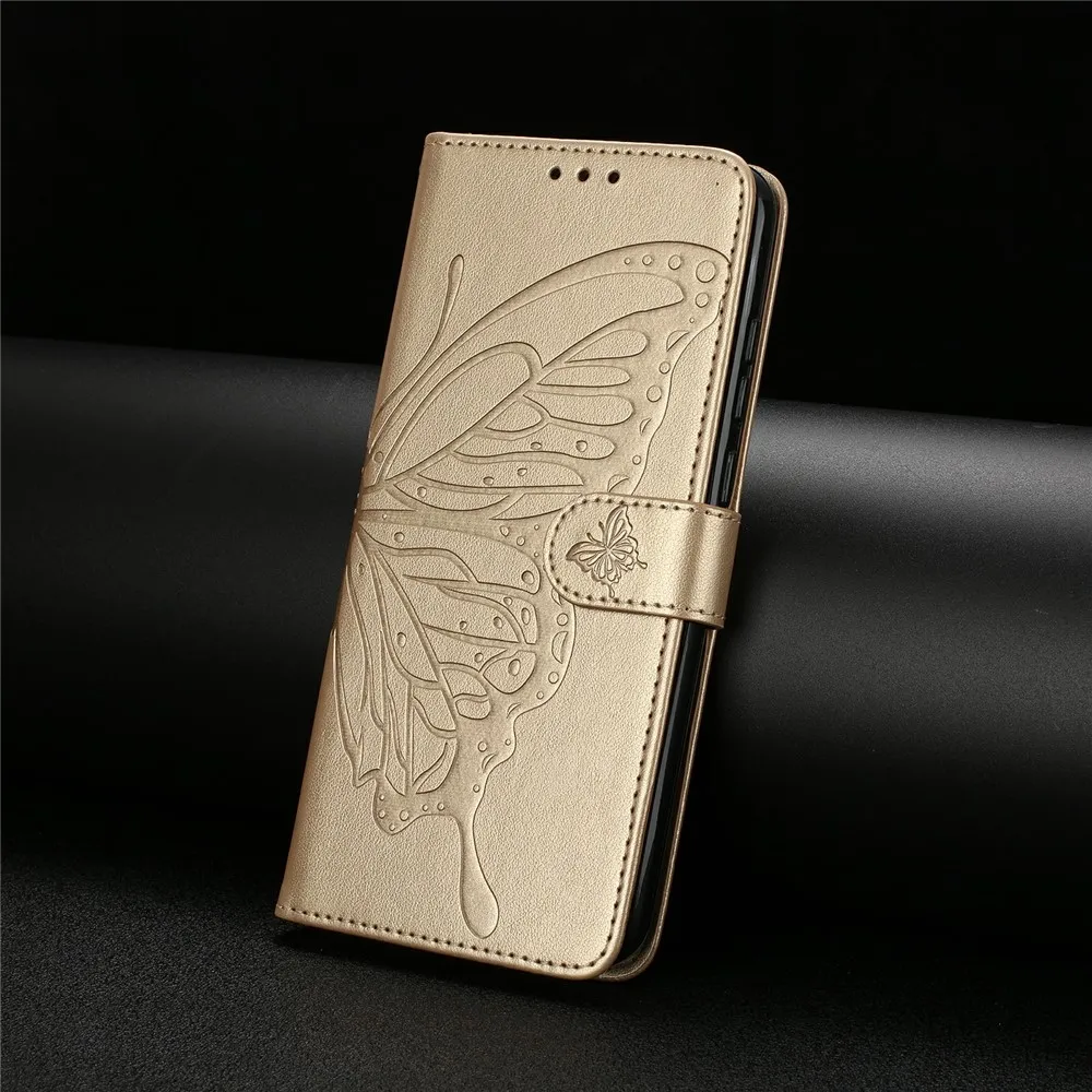 Zlaté peněženkové pouzdro Floral Butterfly na mobil Xiaomi 17