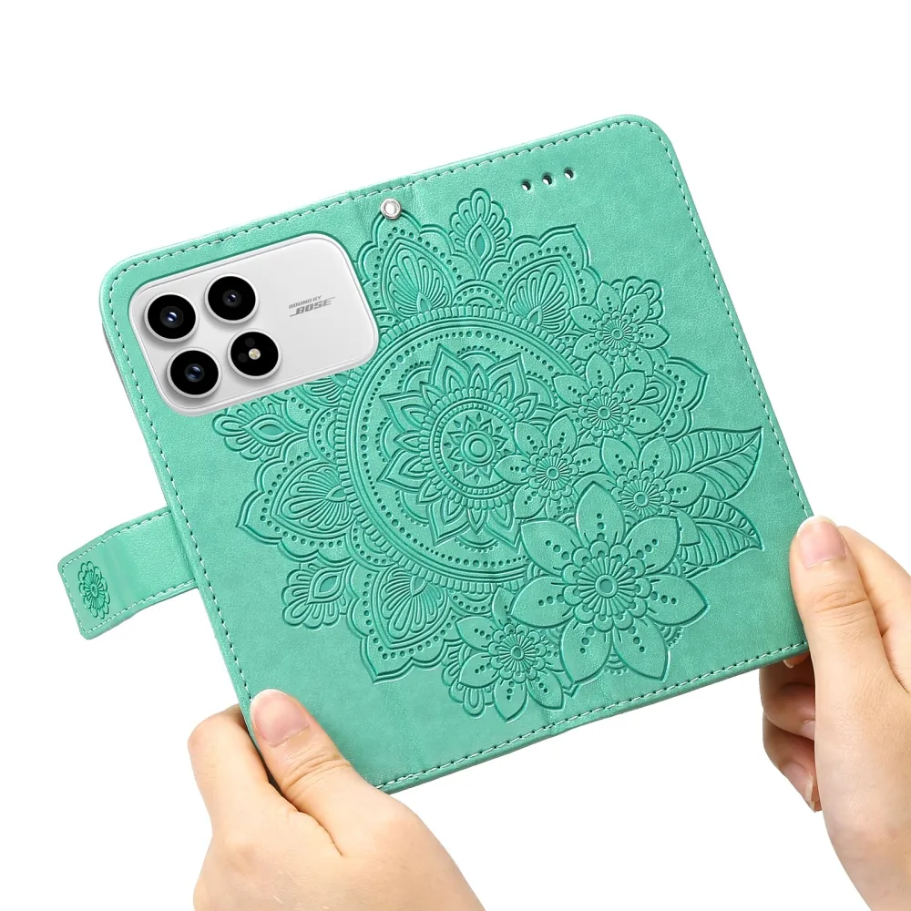 Modrozelené peněženkové pouzdro Floral na mobil Xiaomi Poco F8 Pro 5G