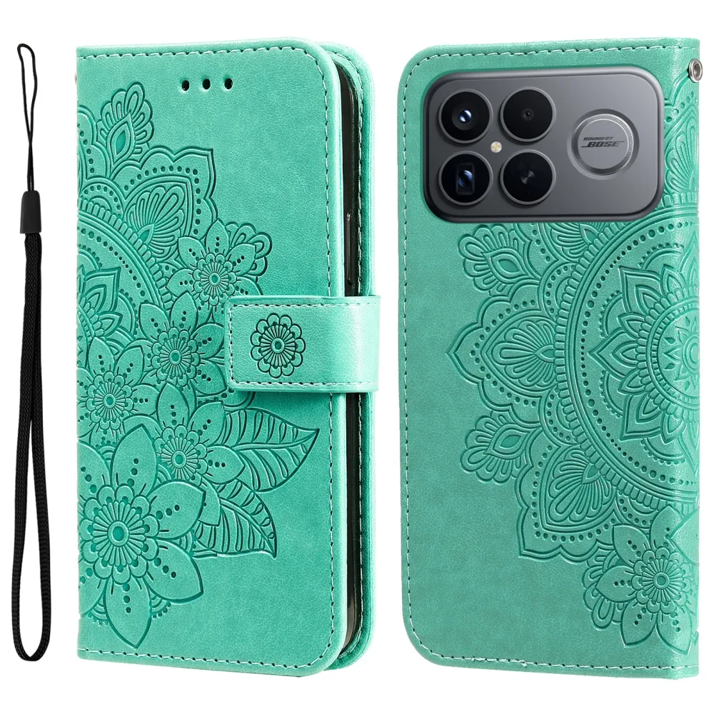 Modrozelené peněženkové pouzdro Floral na mobil Xiaomi Poco F8 Ultra 5G