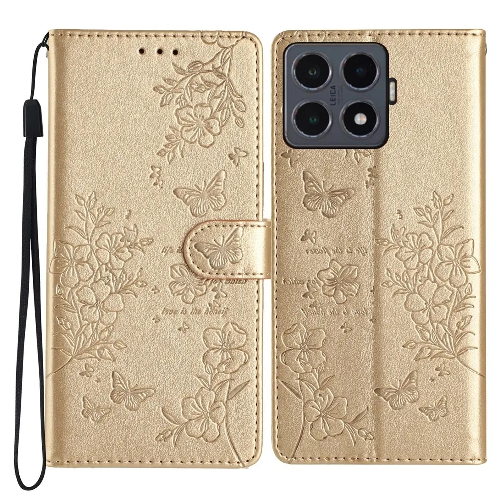 Zlaté peněženkové pouzdro Floralis na mobil Xiaomi 15T Pro