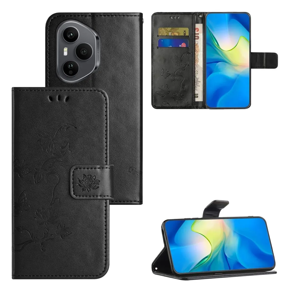 Černé peněženkové pouzdro Flower na mobil Honor 400 Pro
