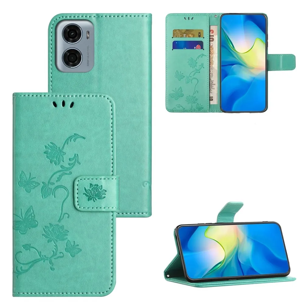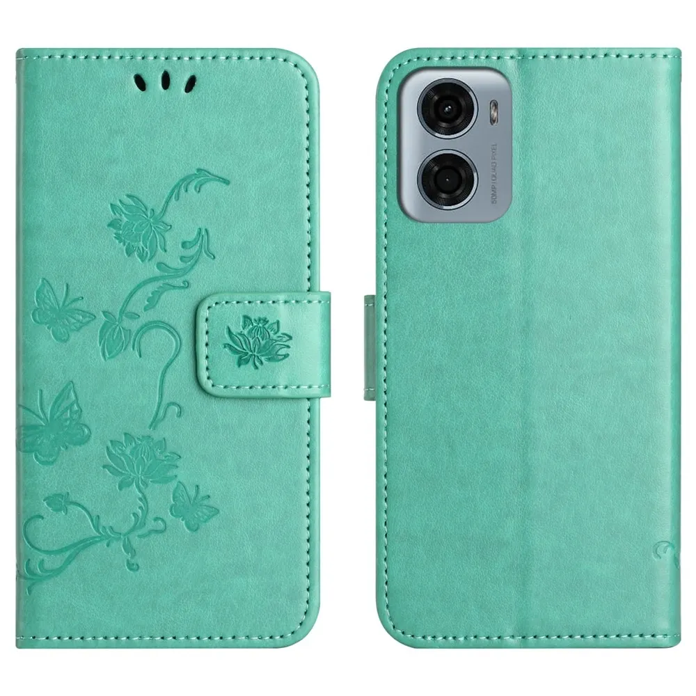 Flower knížkové pouzdro na Motorola Moto G06 - modrozelené