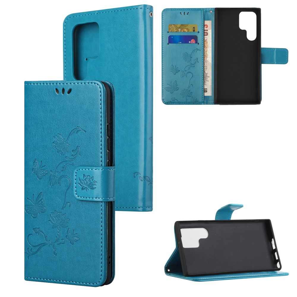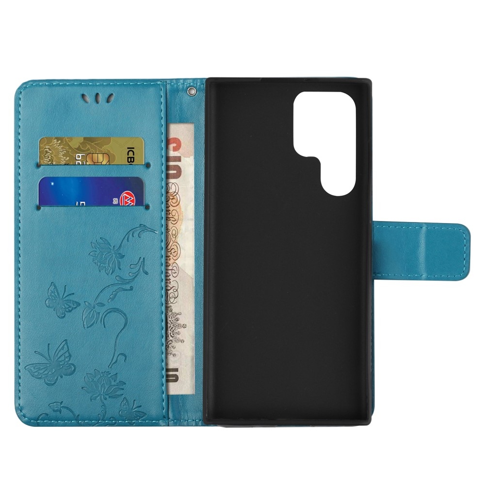 Modré peněženkové pouzdro Flower na Samsung Galaxy S24 Ultra
