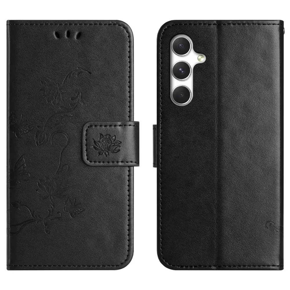 Černé peněženkové pouzdro Flower na Samsung Galaxy S26+