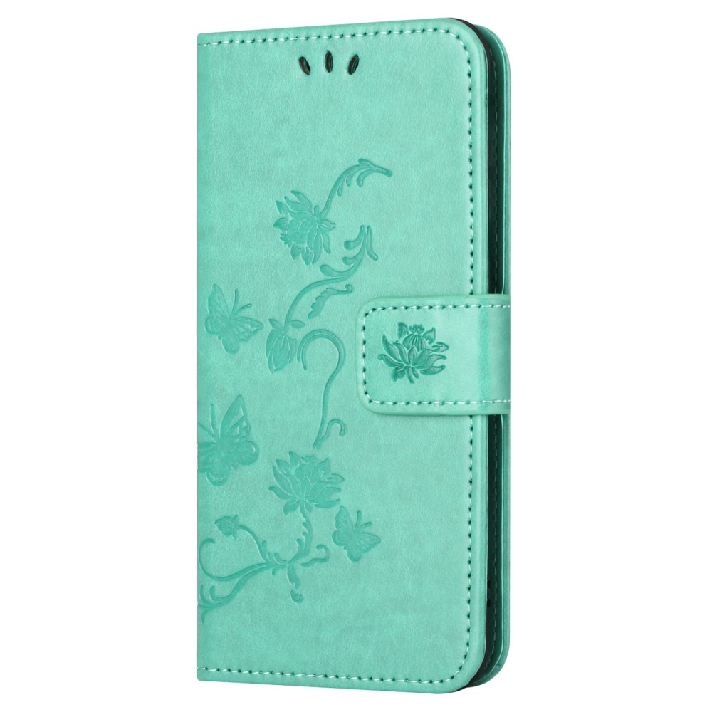 Modrozelené peněženkové pouzdro Flower na Xiaomi Redmi 12 4G/5G