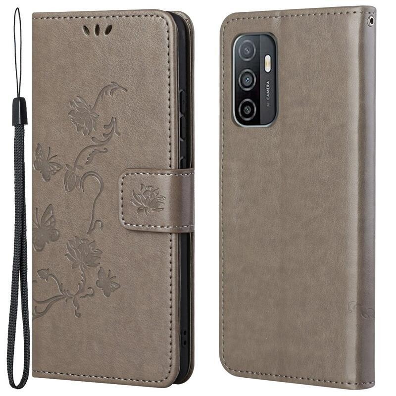 Flower PU kožené peněženkové pouzdro na mobil Samsung Galaxy A33 5G - šedé