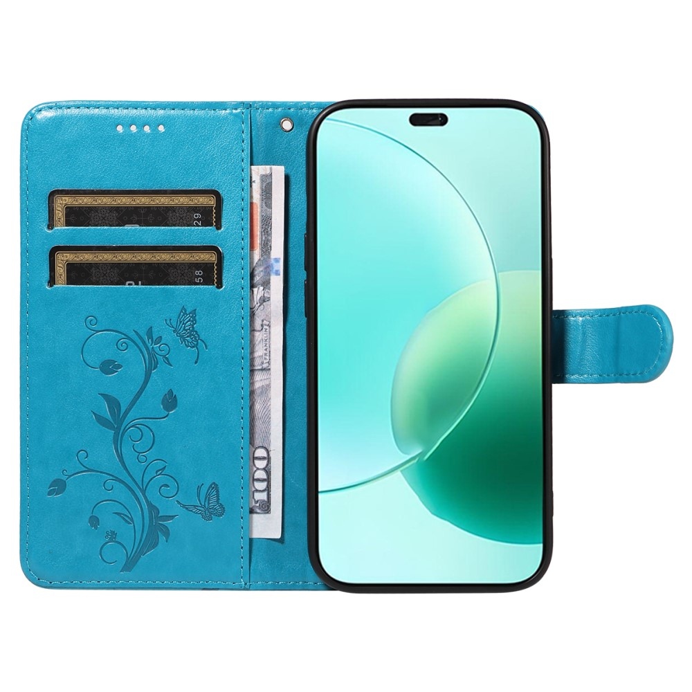 Modré peněženkové pouzdro Flowers na mobil Honor 400 Lite