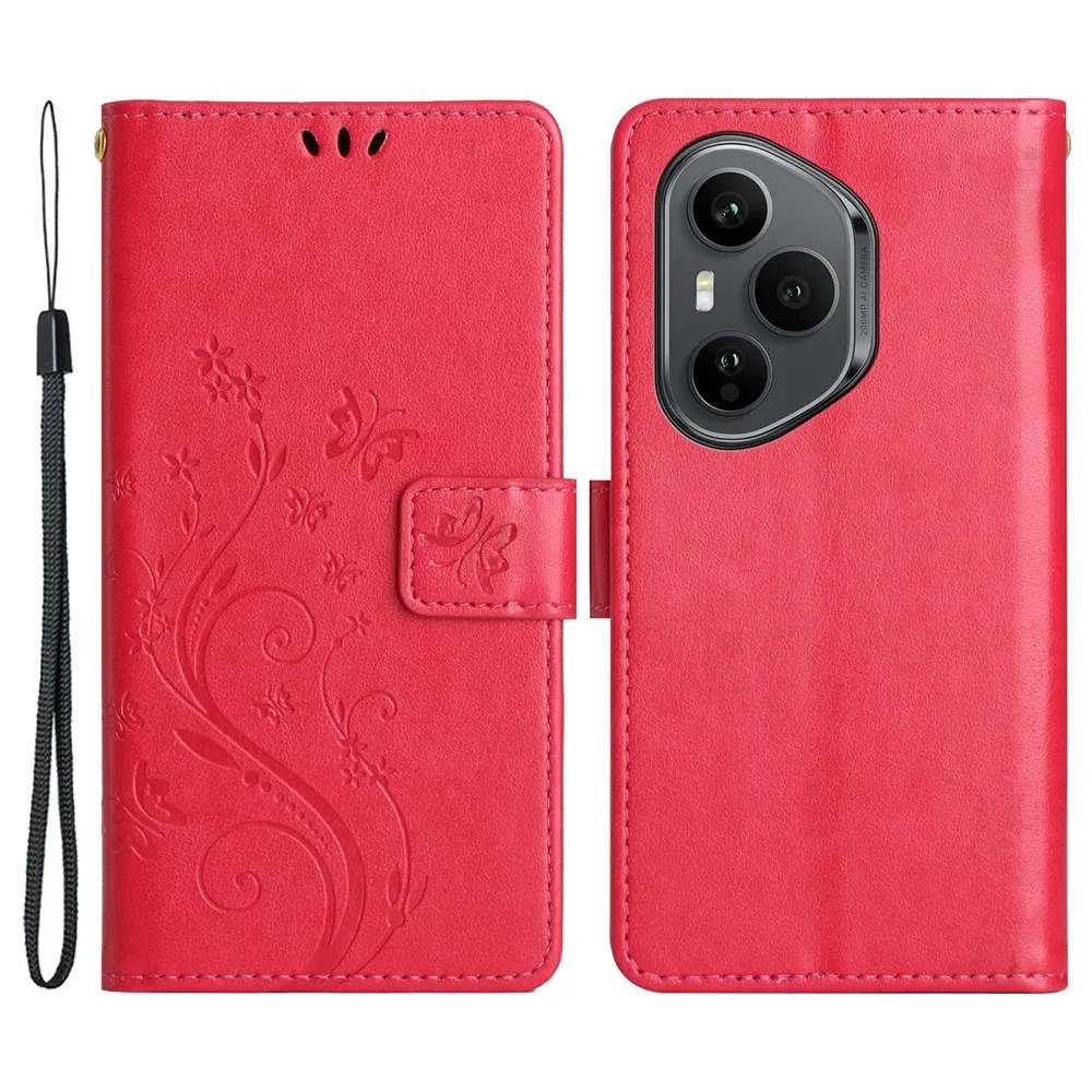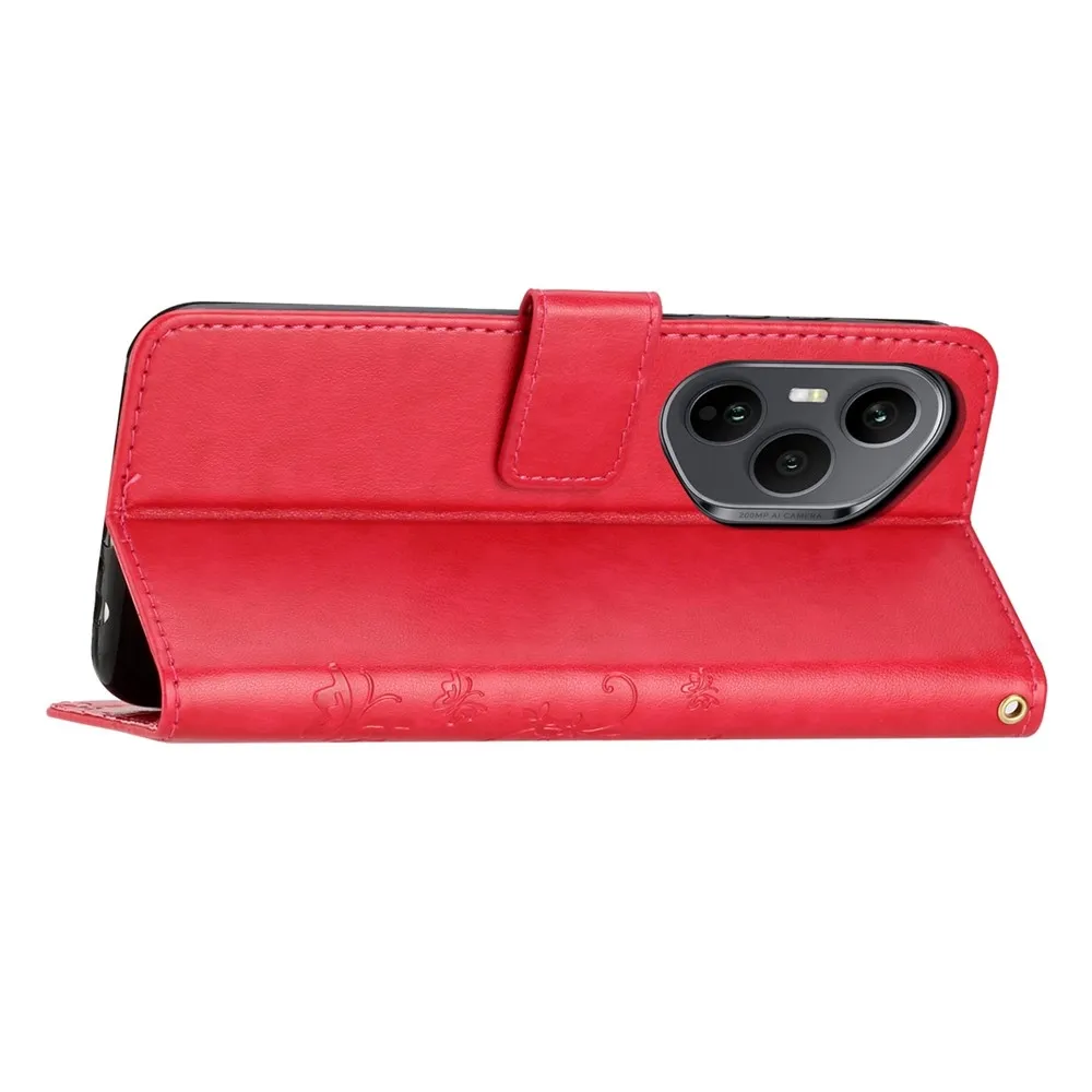 Červené peněženkové pouzdro Flowers na mobil Honor 400 Pro