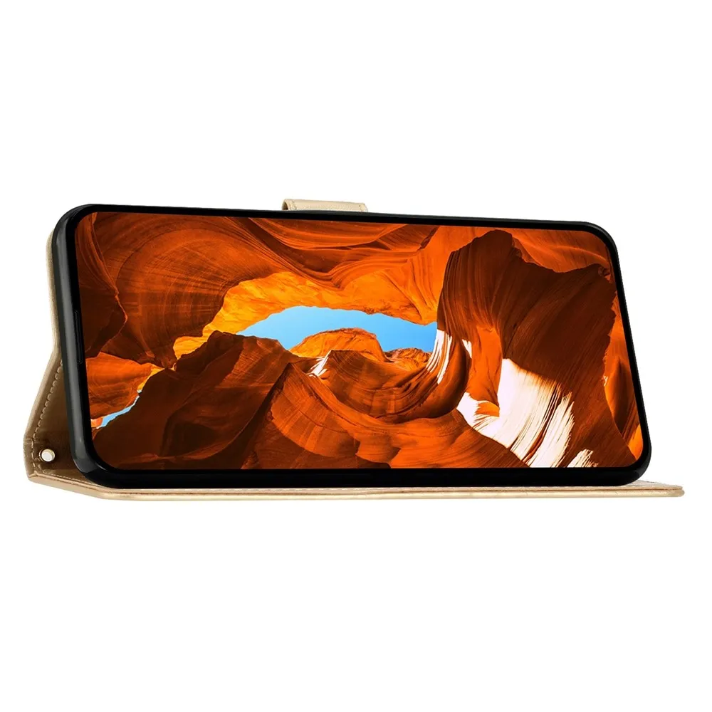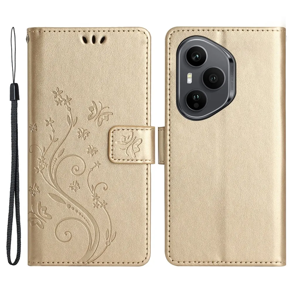 Zlaté peněženkové pouzdro Flowers na mobil Honor 400 Pro