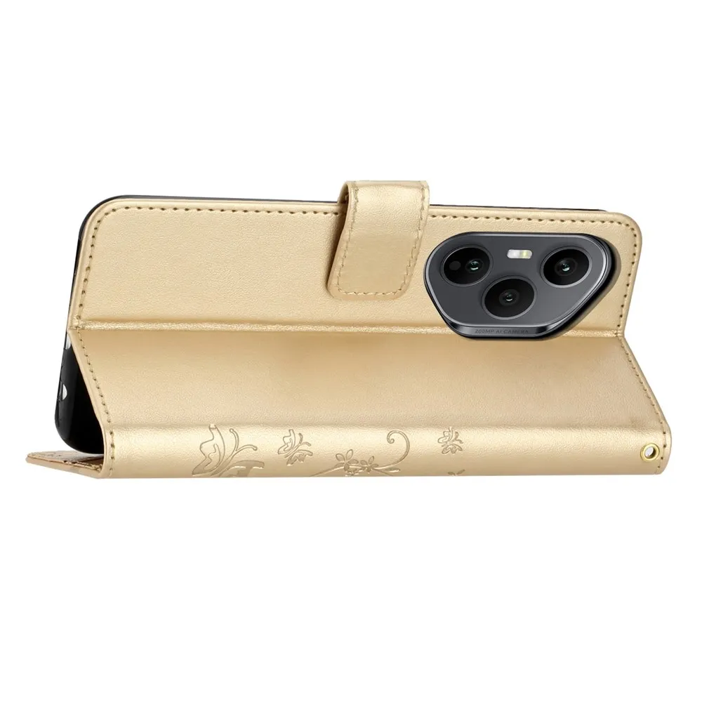 Flowers knížkové pouzdro na Honor 400 Pro - zlaté
