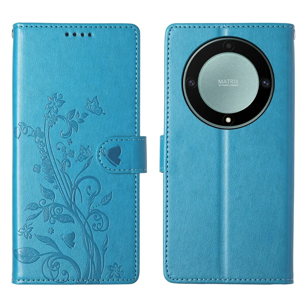 Flowers knížkové pouzdro na Honor Magic 8 Lite 5G - modré