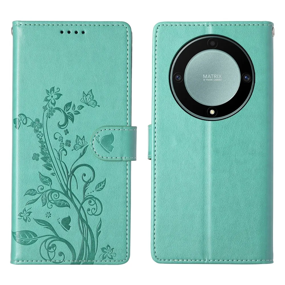 Flowers knížkové pouzdro na Honor Magic 8 Lite 5G - modrozelené
