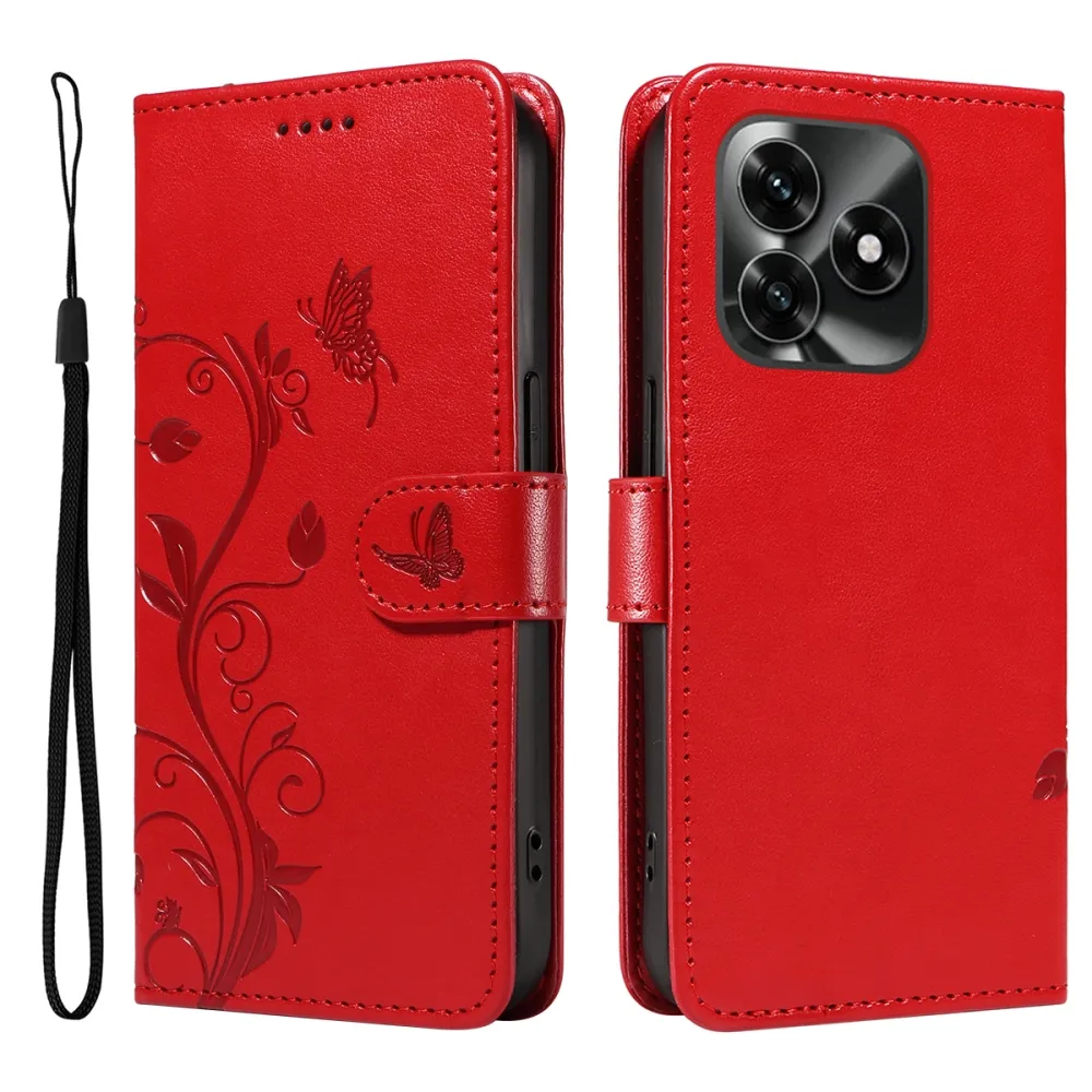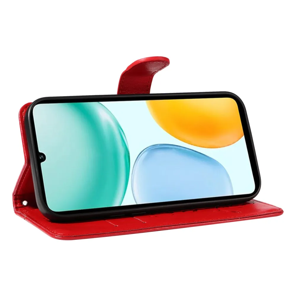 Červené peněženkové pouzdro Flowers na mobil Honor X5c Plus