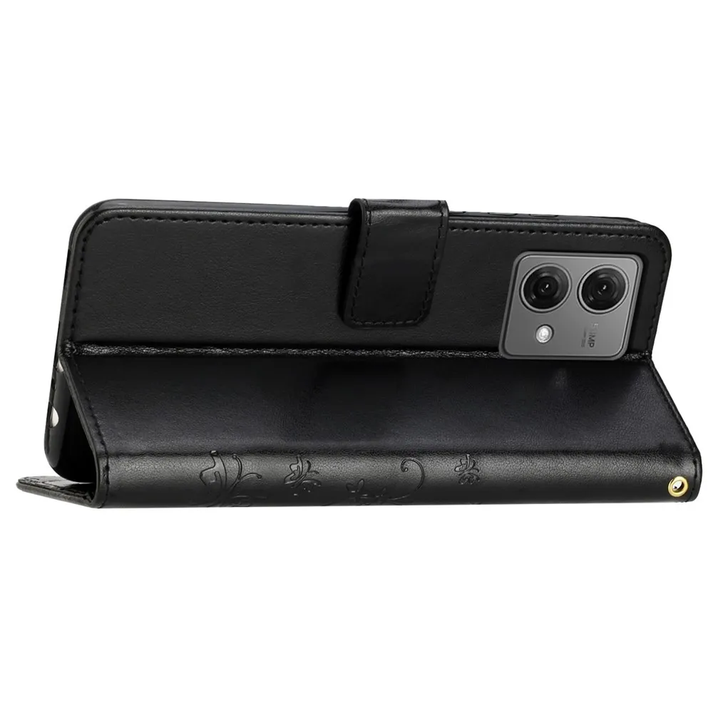 Černé peněženkové pouzdro Flowers na mobil Motorola Moto G85 5G