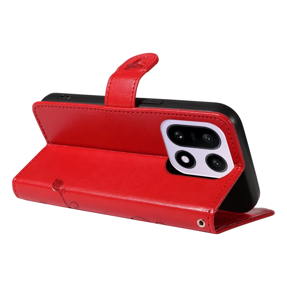 Flowers knížkové pouzdro na OnePlus 15 5G - červené