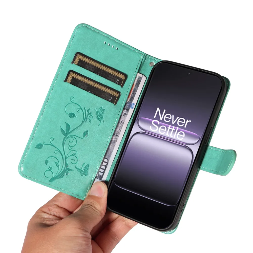 Flowers knížkové pouzdro na OnePlus Nord 5 5G - modrozelené