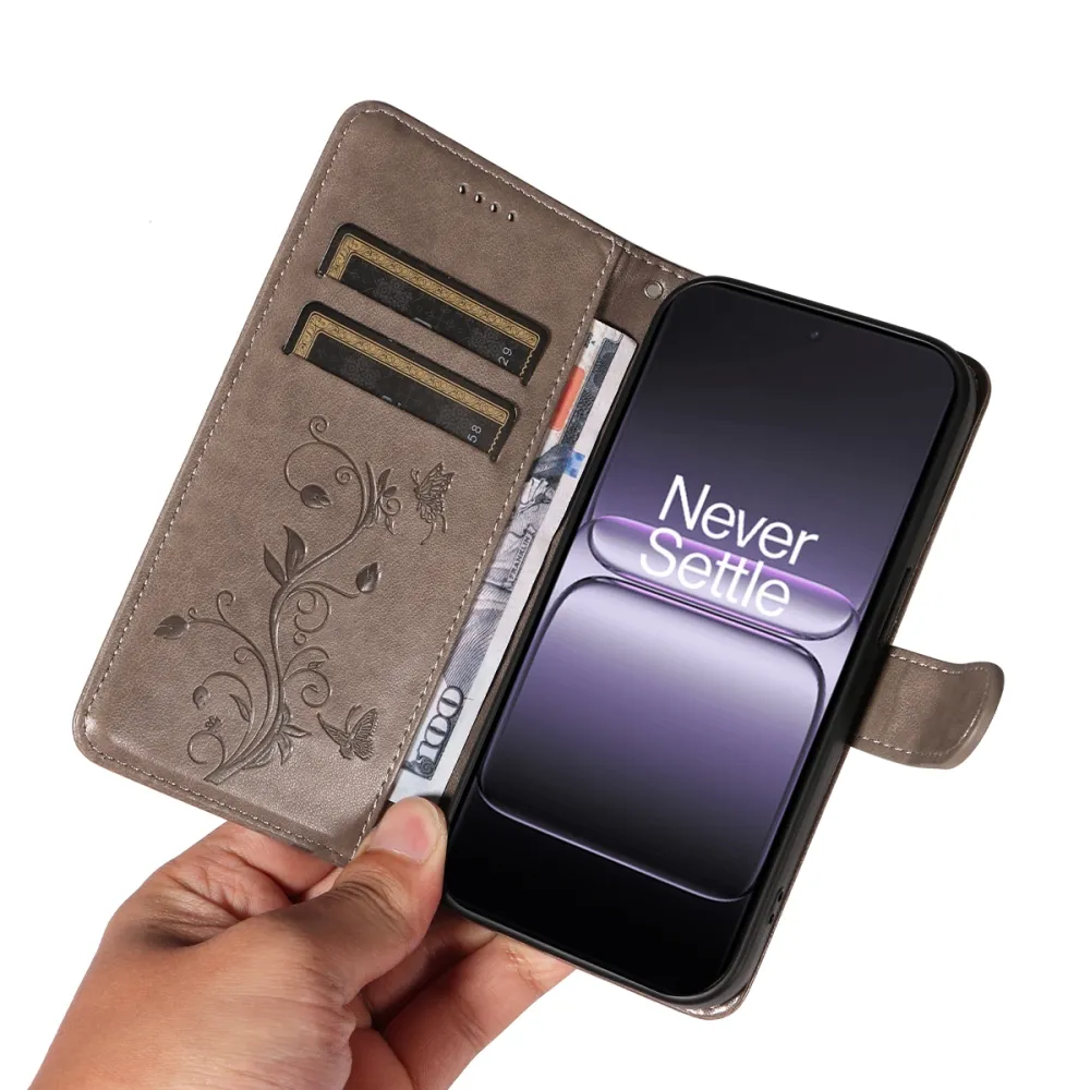Flowers knížkové pouzdro na OnePlus Nord 5 5G - šedé