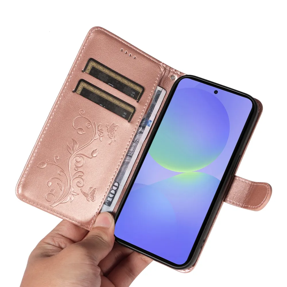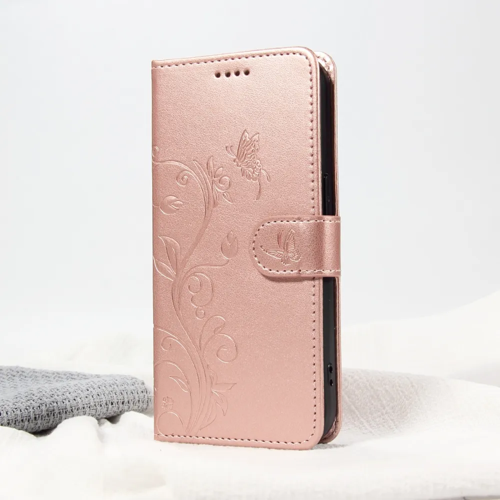 Růžovozlaté peněženkové pouzdro Flowers na mobil Samsung Galaxy A37 5G