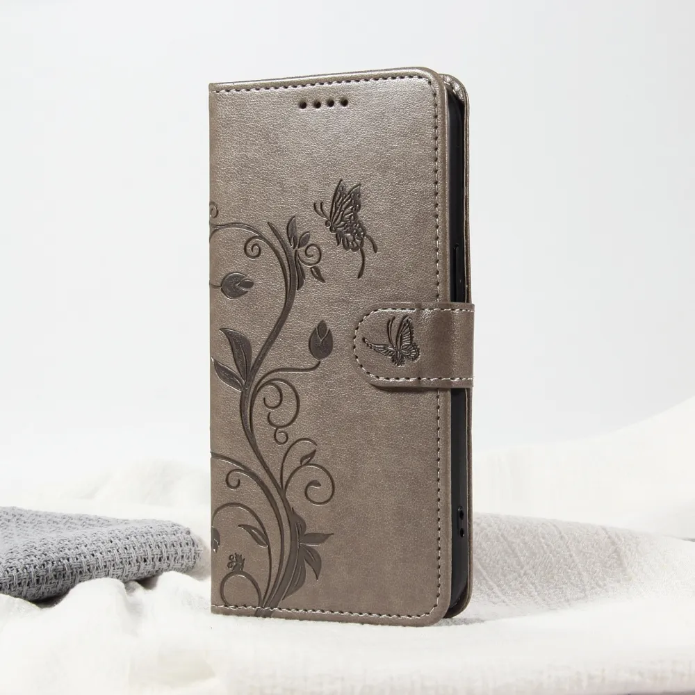 Šedé peněženkové pouzdro Flowers na mobil Samsung Galaxy A37 5G