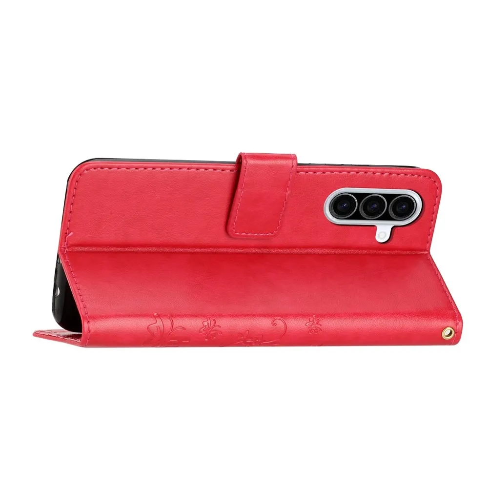 Červené peněženkové pouzdro Flowers na mobil Samsung Galaxy A57 5G