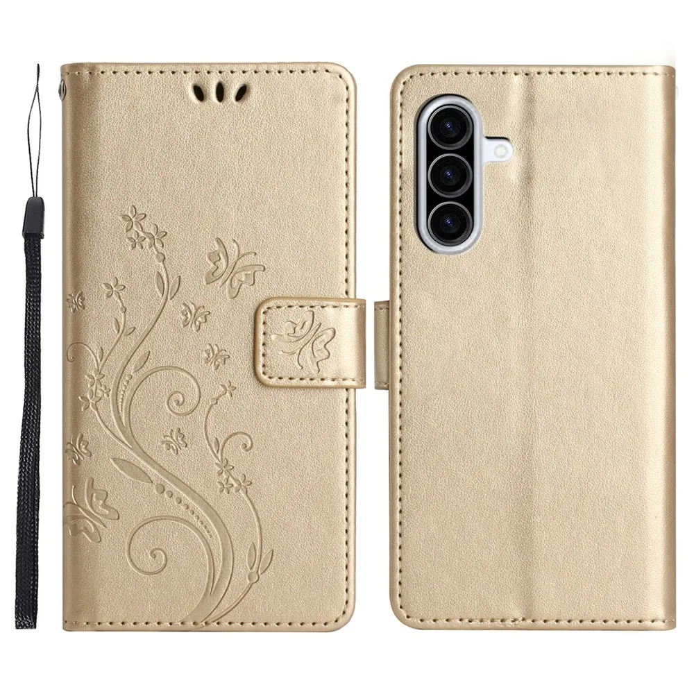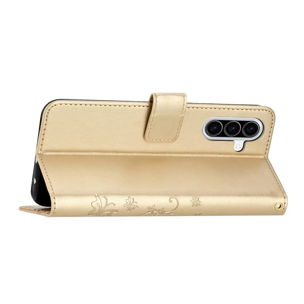 Zlaté peněženkové pouzdro Flowers na mobil Samsung Galaxy A57 5G