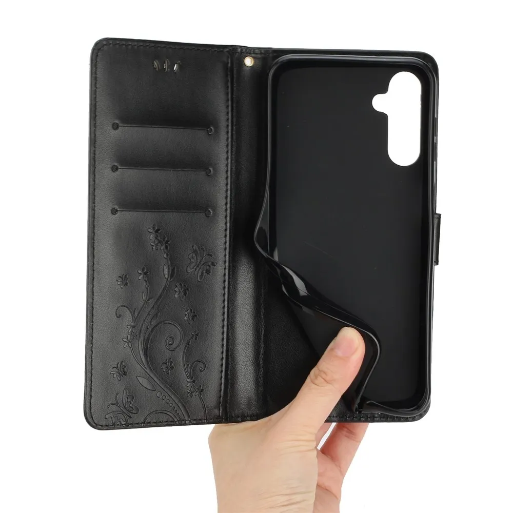 Černé peněženkové pouzdro Flowers na Samsung Galaxy S26+