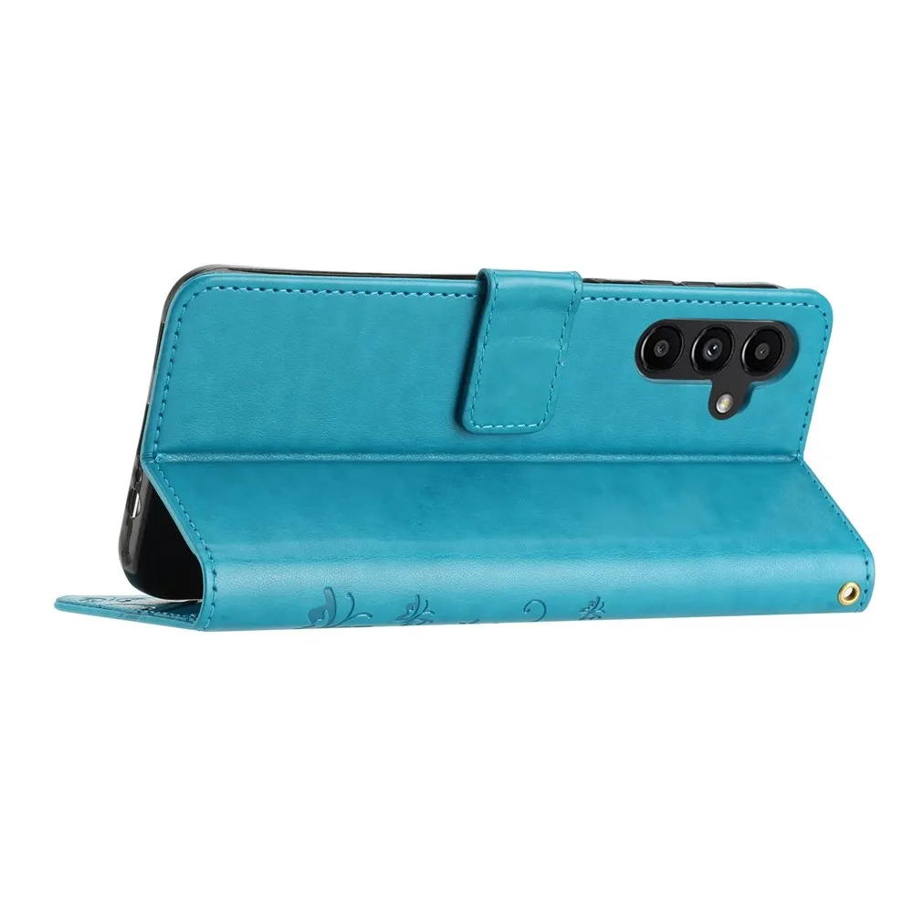 Modré peněženkové pouzdro Flowers na Samsung Galaxy S26+