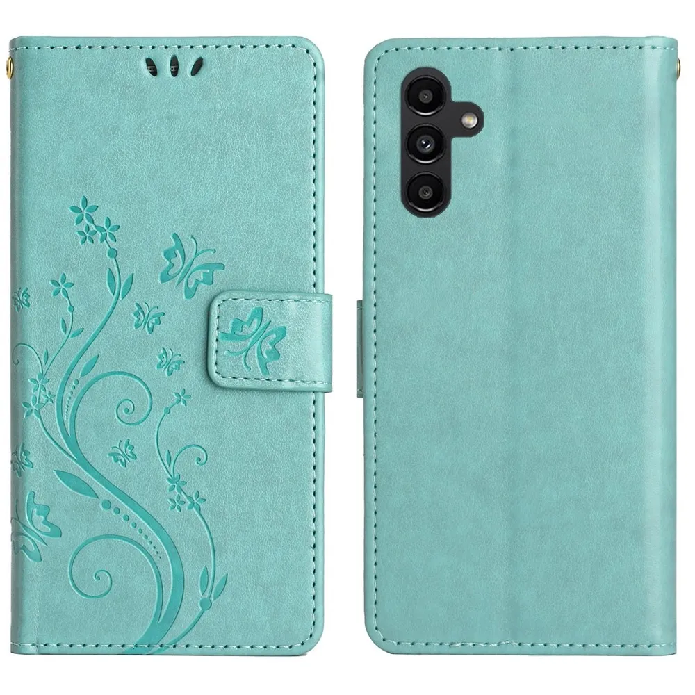 Modrozelené peněženkové pouzdro Flowers na Samsung Galaxy S26/S26 Pro