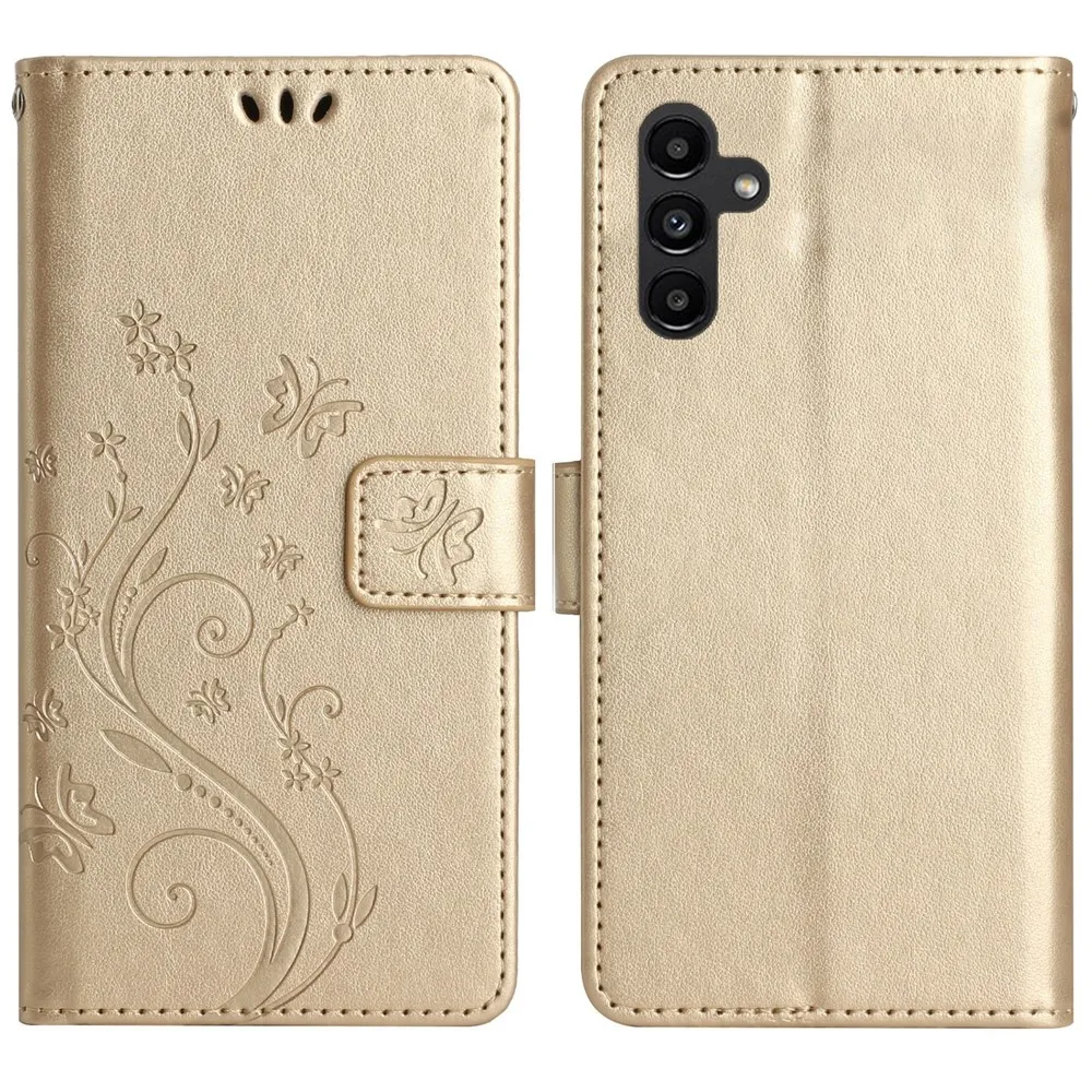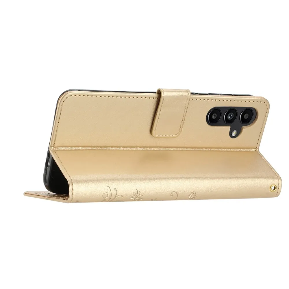 Zlaté peněženkové pouzdro Flowers na Samsung Galaxy S26/S26 Pro