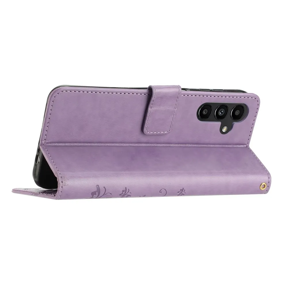 Světlefialové peněženkové pouzdro Flowers na Samsung Galaxy S26+