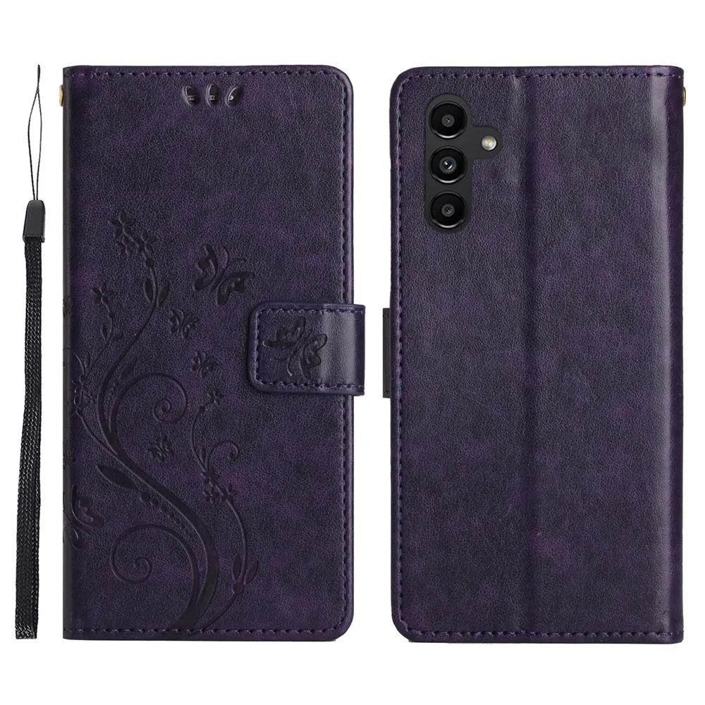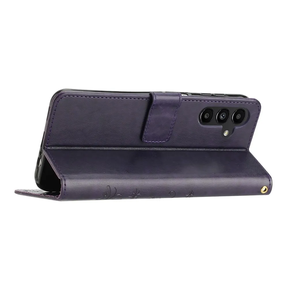 Tmavěfialové peněženkové pouzdro Flowers na Samsung Galaxy S26+
