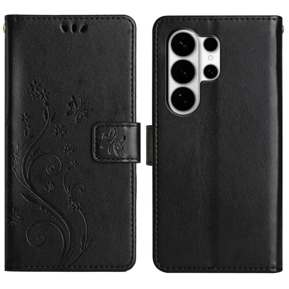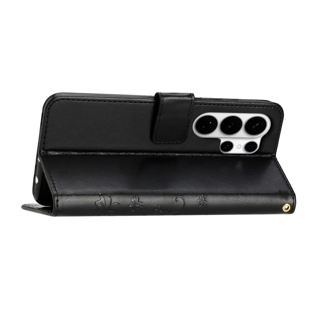 Černé peněženkové pouzdro Flowers na Samsung Galaxy S26 Ultra