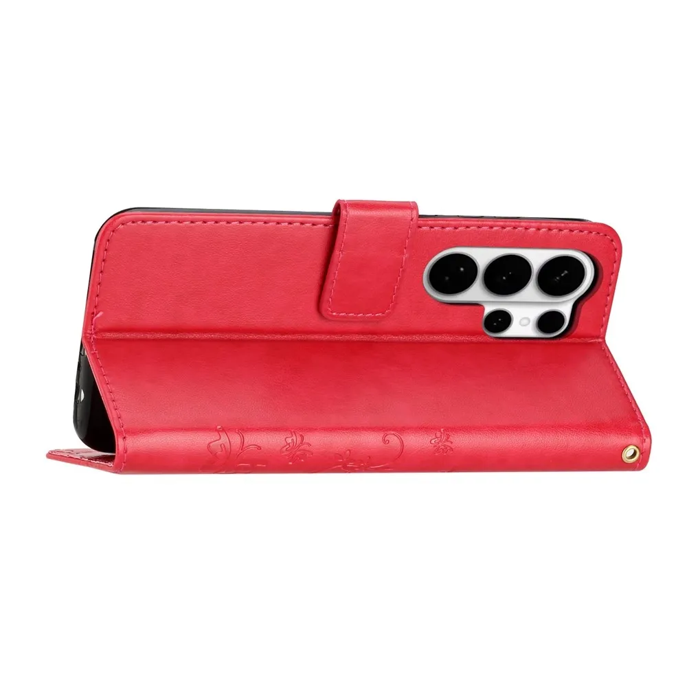 Červené peněženkové pouzdro Flowers na Samsung Galaxy S26 Ultra
